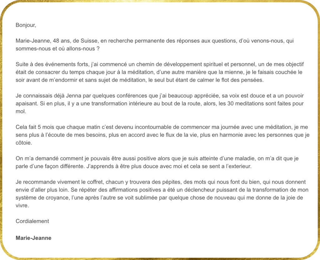 C’est pourquoi, Jenna Blossoms a créé ce Coffret de 30 méditations guidées